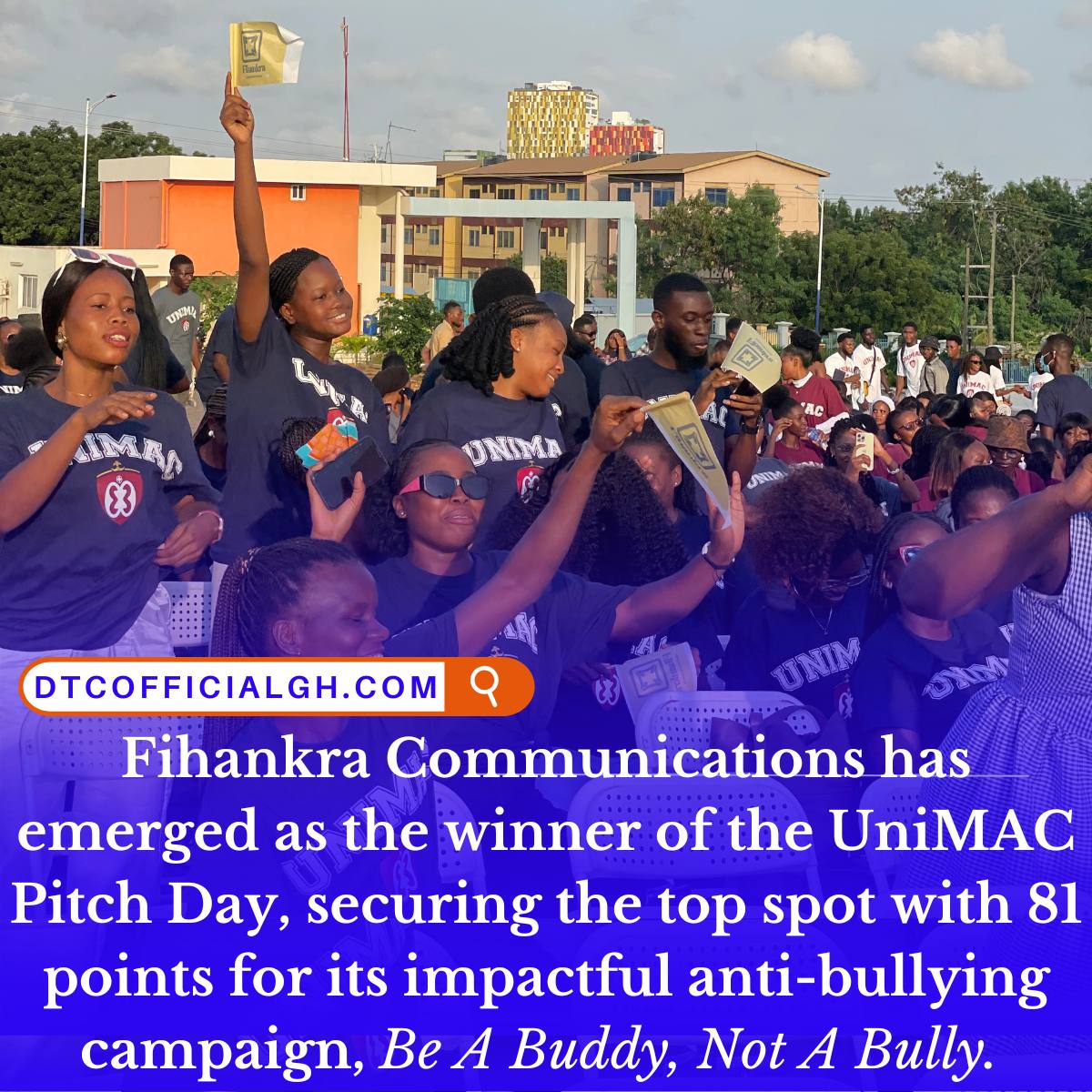 Fihankra Communications has emerged as the winner of the UniMAC Pitch Day with its groundbreaking anti-bullying campaign, Be A Buddy, Not A Bully. The campaign, which aims to combat bullying in Ghanaian senior high schools, received the highest score of 81 points, securing first place in the competition.