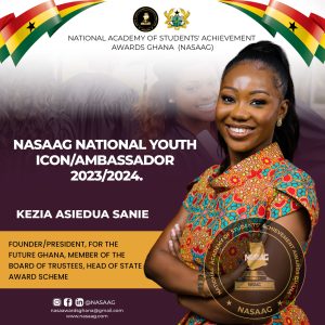 The National Academy of Students’ Achievement Awards Ghana (NASAAG) has proudly unveiled the Kezia Asiedua Sanie as the National Youth Icon/Ambassador for the year 2023/2024. Kezia, a dynamic and visionary leader, has been recognized